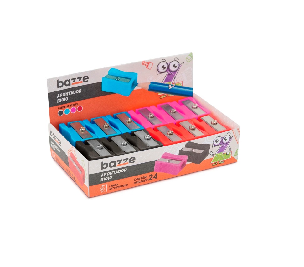 Apontador que cabe em qualquer lugar. Formato retangular com frisos laterais para fixar os dedos!