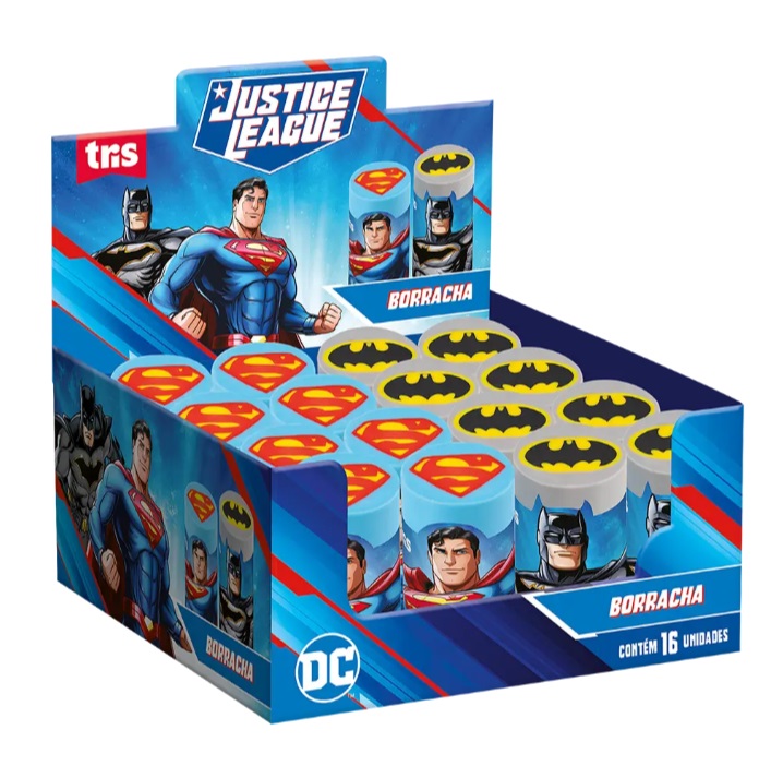 A Borracha Liga da Justiça tem a estampa do super herói em todo seu interior e textura macia. É não tóxica e tem rótulo plástico protetor.