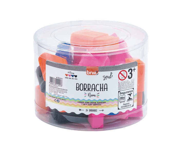 Borracha de formato retangular com corpo e capa protetora em diferentes cores com tons vibrantes e chamativos. As cores permanecem bem vívidas mesmo após o uso. Devido ao tamanho reduzido, é ideal para ser carregada em estojos e ocupar pouco espaço em mesas escolares ou de escritórios. Maciez e suavidade que permite apagar com precisão diversos tipos de grafite sem borrar, enrugar ou manchar o papel.