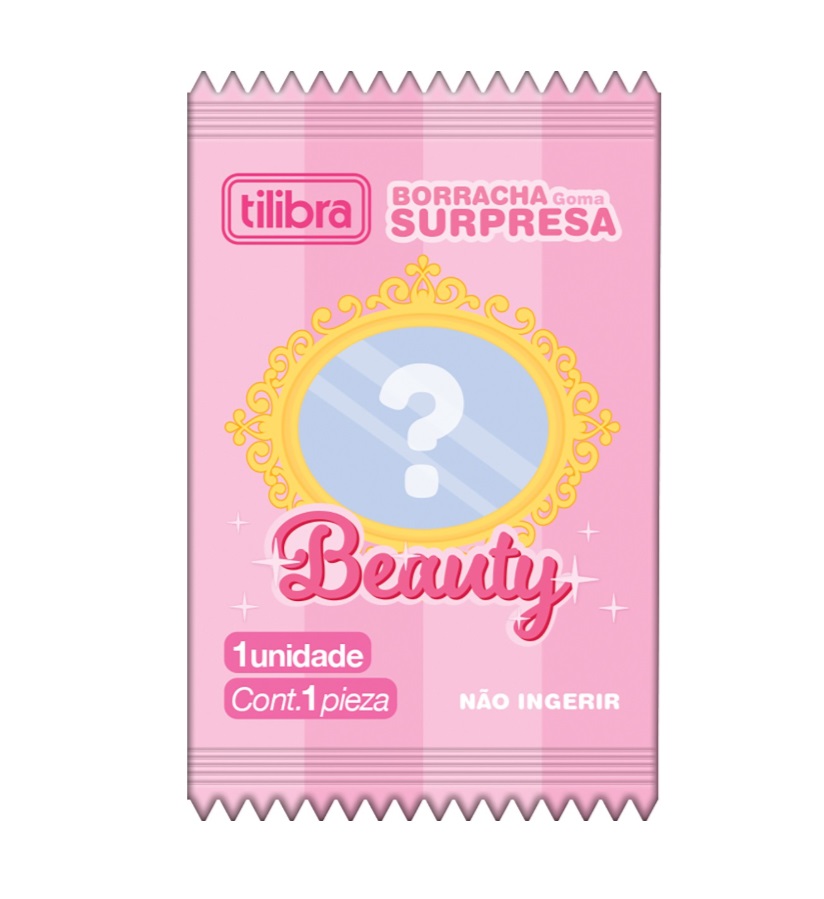 A Borracha Surpresa Beauty Tilibra é um produto divertido do início ao fim! Como assim? Simples, o pacote é sortido e traz apenas a temática da borracha colorida, que é a de beleza. Para saber qual o modelo, que pode ser no formato de batom, rímel, paleta de sombras, secador, nécessaire e perfume, você precisará abrir!