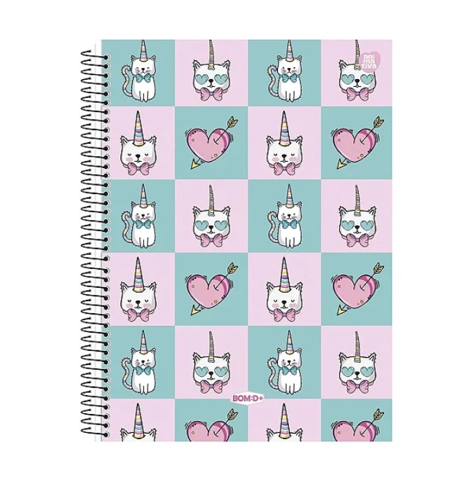 Caderno Espiral Capa Dura Bom D+ Feminino 80fls da Animativa,com um designer fashion e encatador com ilustrações delicadadas e suaves sendo perfeitas para manter suas organizações e anotações com estilo na rotina do dia a dia escolar ou faculdade.