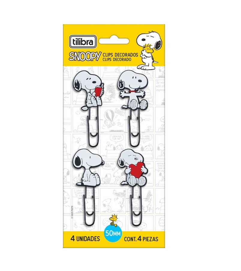 Clips Decorado Snoopy 50mm 4 Unidades - Tilibra 392791