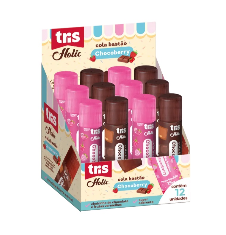 A coleção Docinho traz para as papelarias produtos inspirados nas delíci as do universo da confeitaria! Donuts, balinhas, sorvetes e muito mais! É pura fofura! A cola bastão Chocoberry possui cor suave e cheirinho de chocolate e frutas vermelhas. Com 15g e super aderente, é perfeita par a deixar seus projetos ainda mais gostosos!