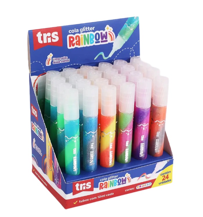 A Cola glitter colorida Rainbow tem 10 ml e duas cores vibrantes no mesmo tubo para criar efeitos incríveis. Vem com bico dosador que garante aplicação precisa e sem desperdício, perfeita para deixar seus trabalhos m anuais ainda mais criativos e brilhantes!