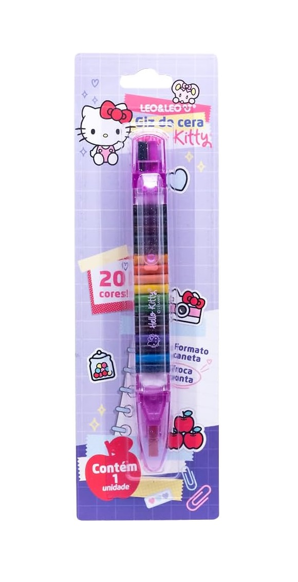 O Giz de Cera Caneta Troca Ponta 20 Cores Hello Kitty da Leo&leo é um conjunto encantador e versátil de gizes de cera em formato de caneta, inspirado na famosa personagem Hello Kitty. Cada blister contém uma unidade com 20 cores vibrantes para tornar suas atividades de colorir e desenhar mais criativas e divertidas. Com a praticidade da troca de ponta, você pode facilmente alternar entre traços finos e grossos, permitindo uma experiência de colorir mais dinâmica e detalhada.