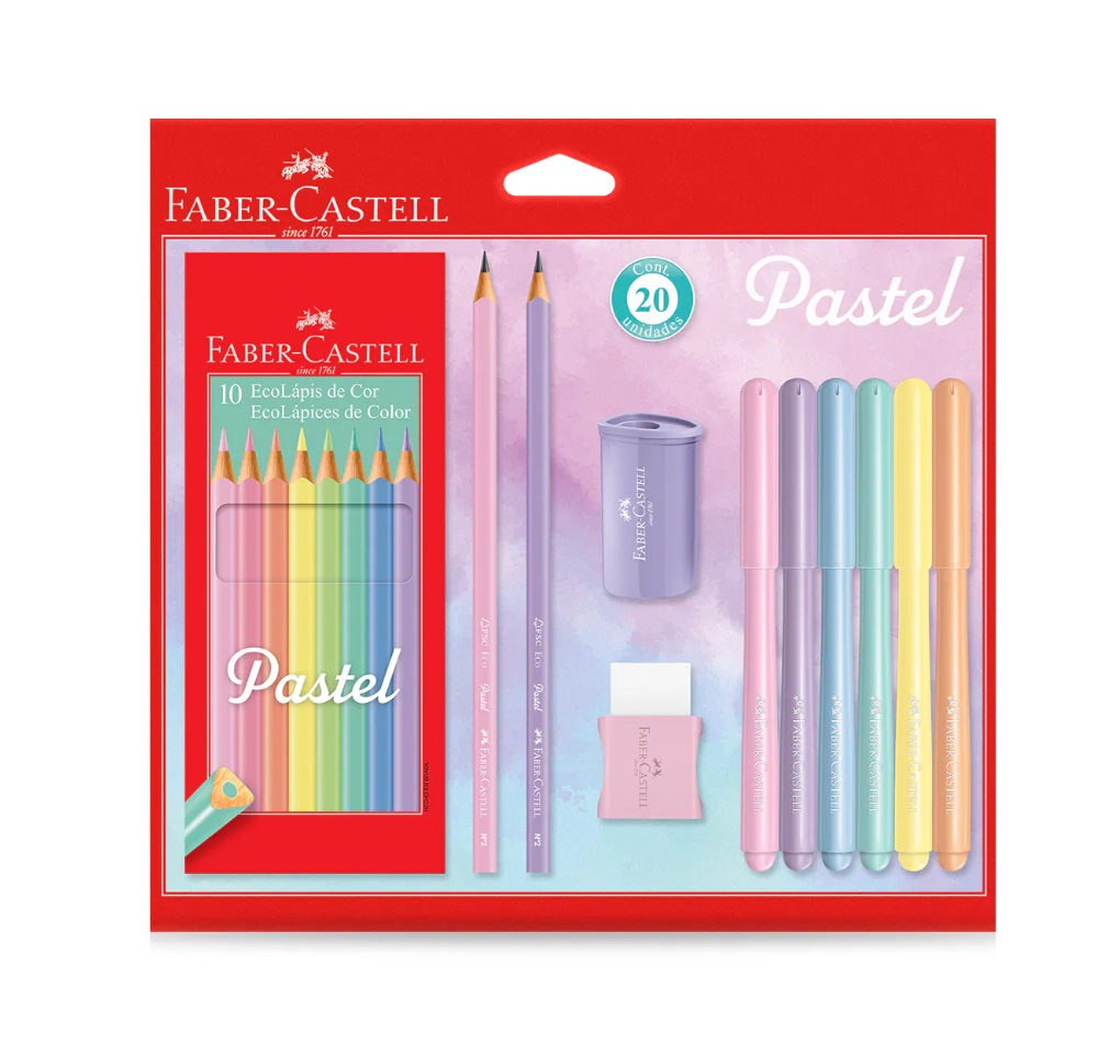 O tom pastel não sai de moda. Agora a Faber Castell montou esse kit incrível com 10 lápis de cor, 1 borracha, 1 apontador e 2 lápis preto para você colecionar ou criar desenhos lindos com a qualidade que só a Faber Castell proporciona. Garanta o seu!
