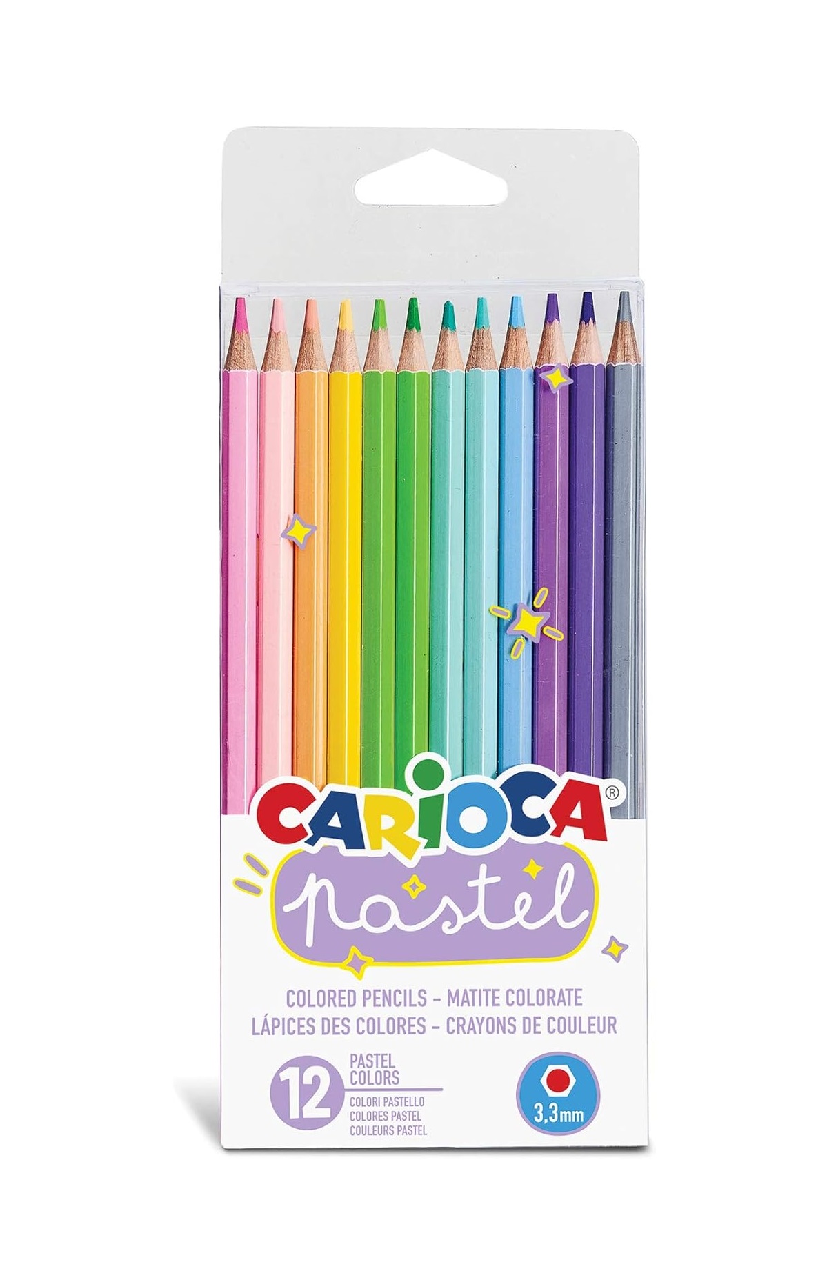 Lápis de Cor Hexagonal Pastel, Carioca Pastel, Caixa com 12 cores 9732